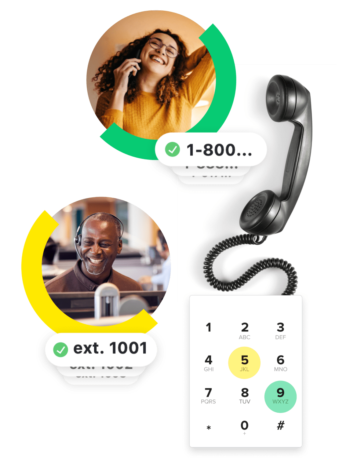 No importa si su equipo comparte una oficina o si trabaja desde cualquier otra parte, las extensiones de números de teléfono de empresa llevan a las personas que llaman al lugar correcto en segundos. Ahora podrá: