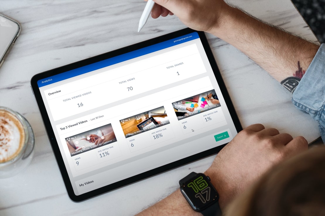 - El número total de visualizaciones, las veces que se ha compartido un vídeo y el tiempo total de visualización